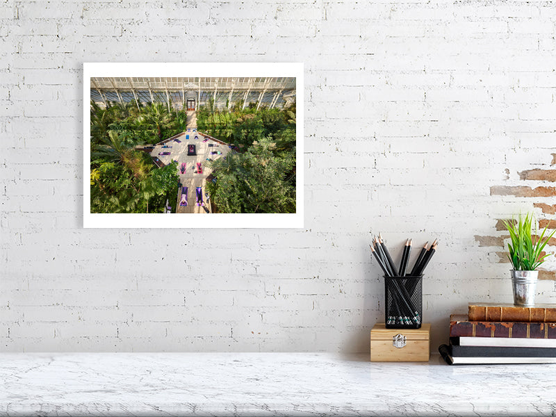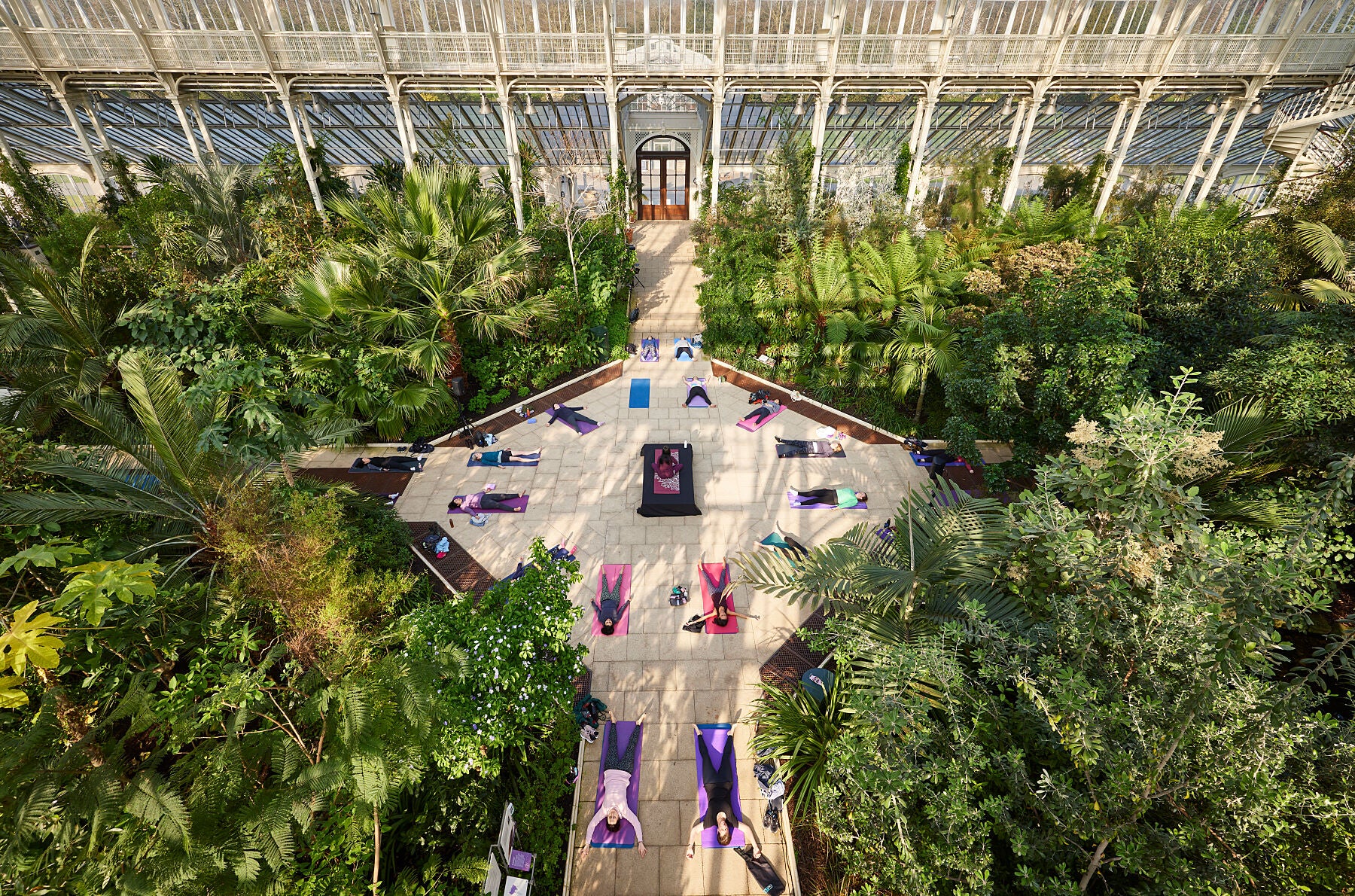 Early morning yoga class in the Temperate House at Kew Gardens, London, UK, 2022